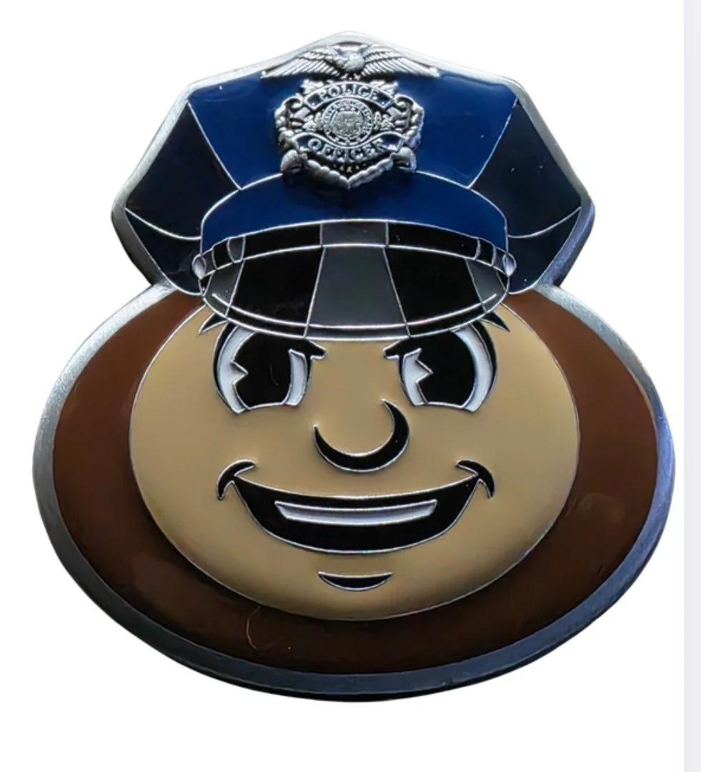 Our third commemorative Challenge Coin featuring the First Responder Bourbon Society Logo on one side, and the notorious Ohio State Buckeyes Brutus wearing a police 8 point hat on the other side.